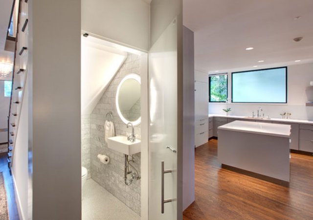 In the first instance, we would recommend that you seek advice from a specialist who will be able to assess whether there is scope to install a cloakroom under the stairs. It may be necessary to lay a new pipeline, if the soil pipes are not accessible. Ideally, you need to position your cloakroom within proximity to your kitchen or directly under the upstairs bathroom, meaning that the amenities can be shared while also minimising the cost of plumbing and installation. If new ones are required, there may be some additional costs to factor in. If you discover essential pipework or utility meters under your staircase, check to see if you can cover them with a waterproof covering whilst still being accessible.